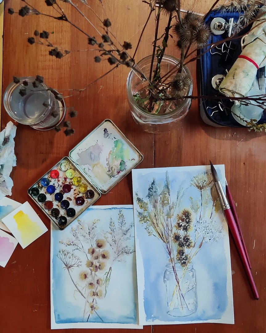 Original watercolor – not a print – of a fall bouquet. This painting is unmounted and unframed.