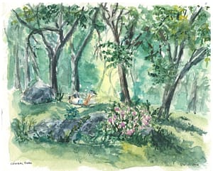 Original watercolor – not a print – painted plein air at one of the old quarries in Barre, Vermont. I used water from the quarry to activate my paints, so by buying this painting you are bringing home a part of the quarry. This painting is unmounted and unframed.